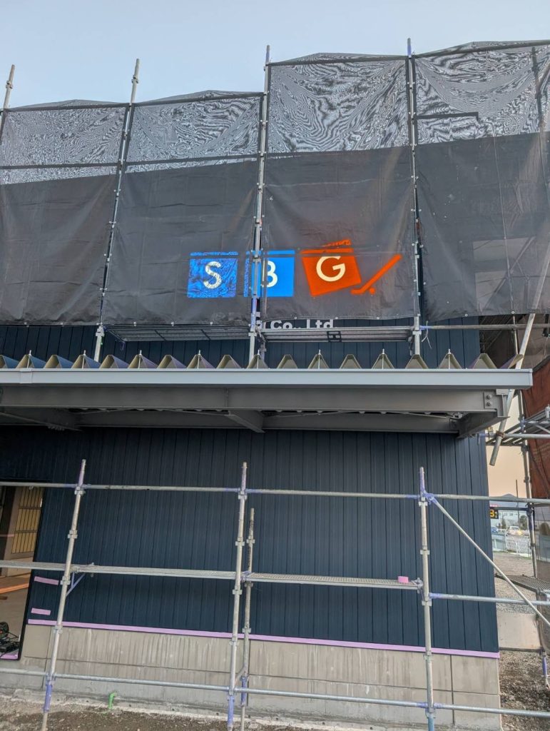 先日、社名看板が設置されました!倉庫の完成が楽しみです。